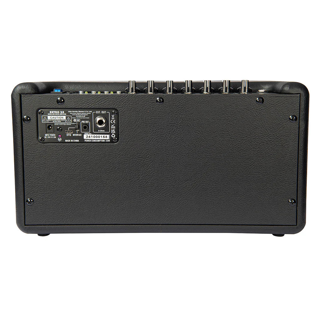 • 25 watts • 2 x 5" Speakers • 6 Effects. Chorus, Delay, Flanger, Vibrato, Reverb and Delay + Reverb • 8 Well Known Amp Sounds Simulated • Connectivity • Adjustable Bass and Treble Equalisation • Boost and Cut • Computer and Smart Phone Recording • Extension Speaker Out and Pre Amp Out • 30 Changeable Drum Sounds